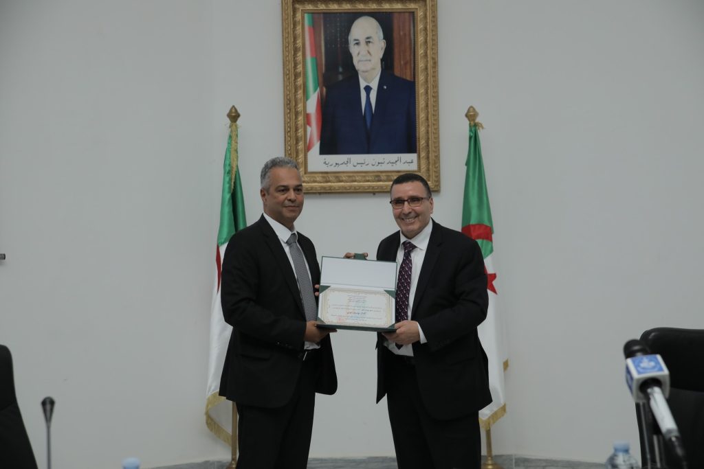 وفي ختام اللقاء، قام السيد مدير الجامعة البروفيسور حمو بوزيان أمين بتكريم البروفيسور كمال يوسف تومي، تقديرًا لمسيرته العلمية المتميزة، وإسهاماته البارزة في مجالات البحث والتكنولوجيا، واعترافًا بعطائه المتواصل في خدمة المعرفة والوطن.