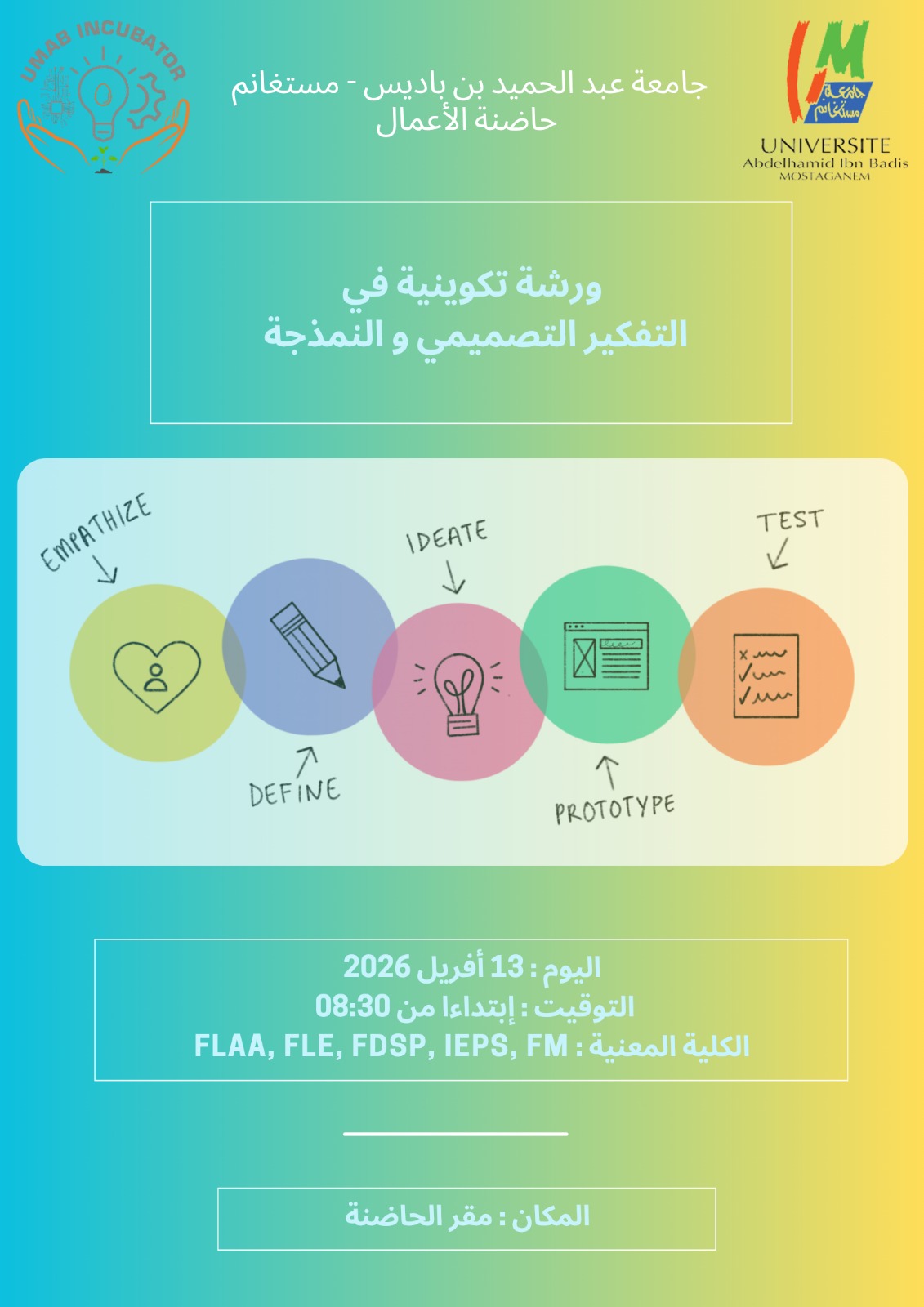 الرئيسية/image 2026/ورشة تكوينية في التفكير التصميمي و النمذجة image 2026slideالمستجدات ورشة تكوينية في التفكير التصميمي و النمذجة منذ ساعتين 1 Post Views: 3 منذ ساعتين 1 فيسبوك تويتر لينكدإن Tumblr بينتيريست Reddit VKontakte مشاركة عبر البريد طباعة