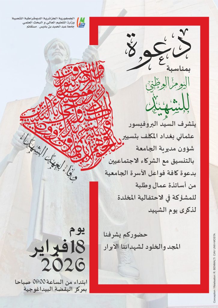 Accueil/A la une/دعوة للمشاركة في وقفة إحياء ذكرى يوم الشهيد A la uneActualités دعوة للمشاركة في وقفة إحياء ذكرى يوم الشهيد il y a 3 jours 22 Post Views: 26 il y a 3 jours 22 Facebook Twitter Linkedin Tumblr Pinterest Reddit VKontakte Partager par email Imprimer