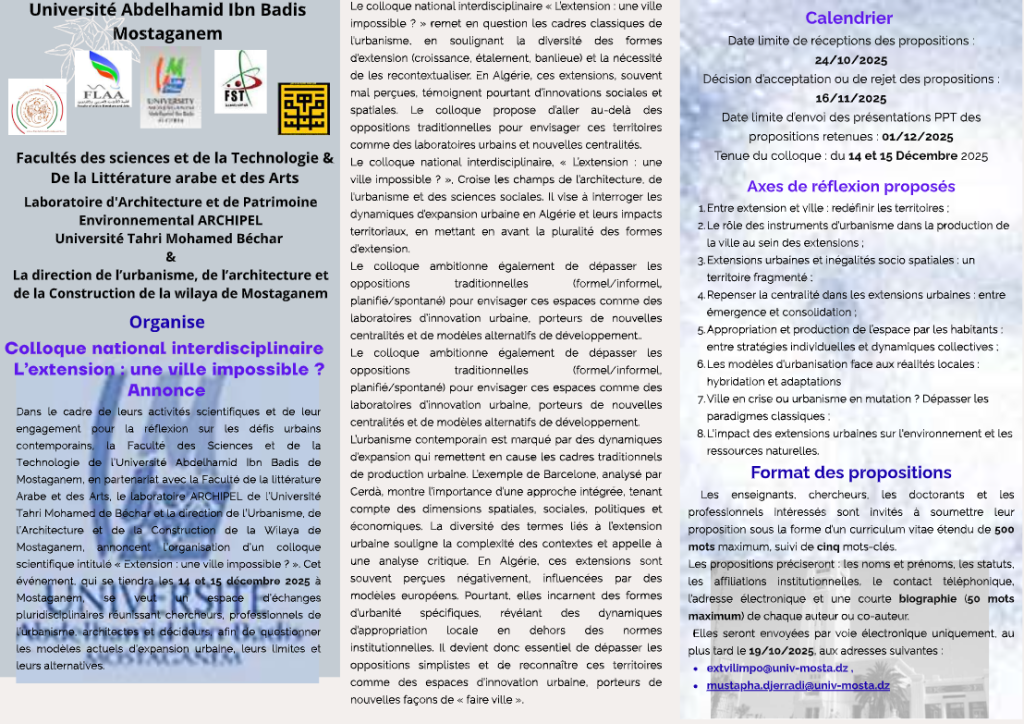 Colloque national interdisciplinaire L’extension ; une ville impossible ?