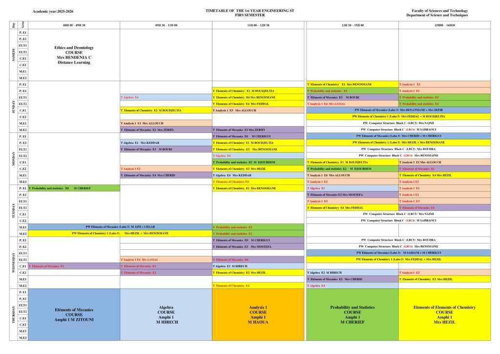 Emplois du temps Socle commun Sciences et Technologies/ 1 Année Ingénieur