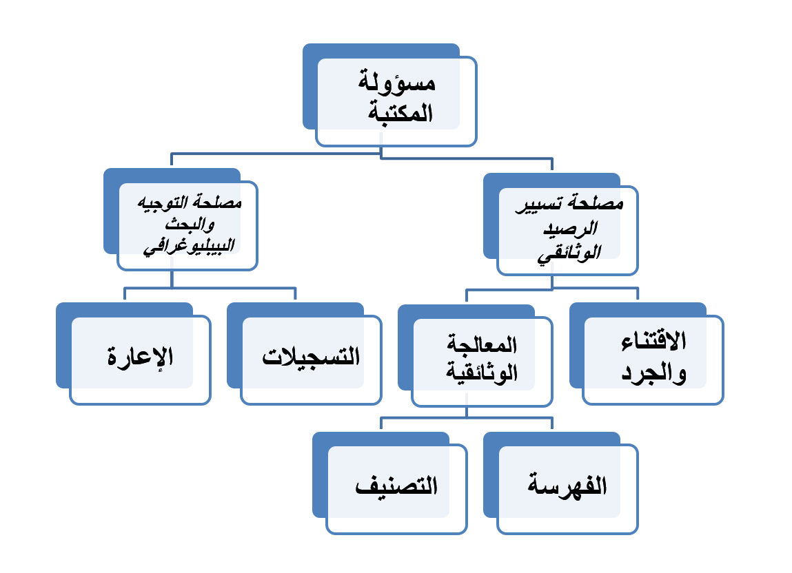 أمًا الطابق الأول فيحتوي على قاعتين للاستشارة وفق نظام الرفوف المفتوحة لفتح المجال امام الطلبة للتعرف على الرصيد الوثائقي الموجود، بالإضافة إلى قاعة للمطالعة، ومكتب المدير.