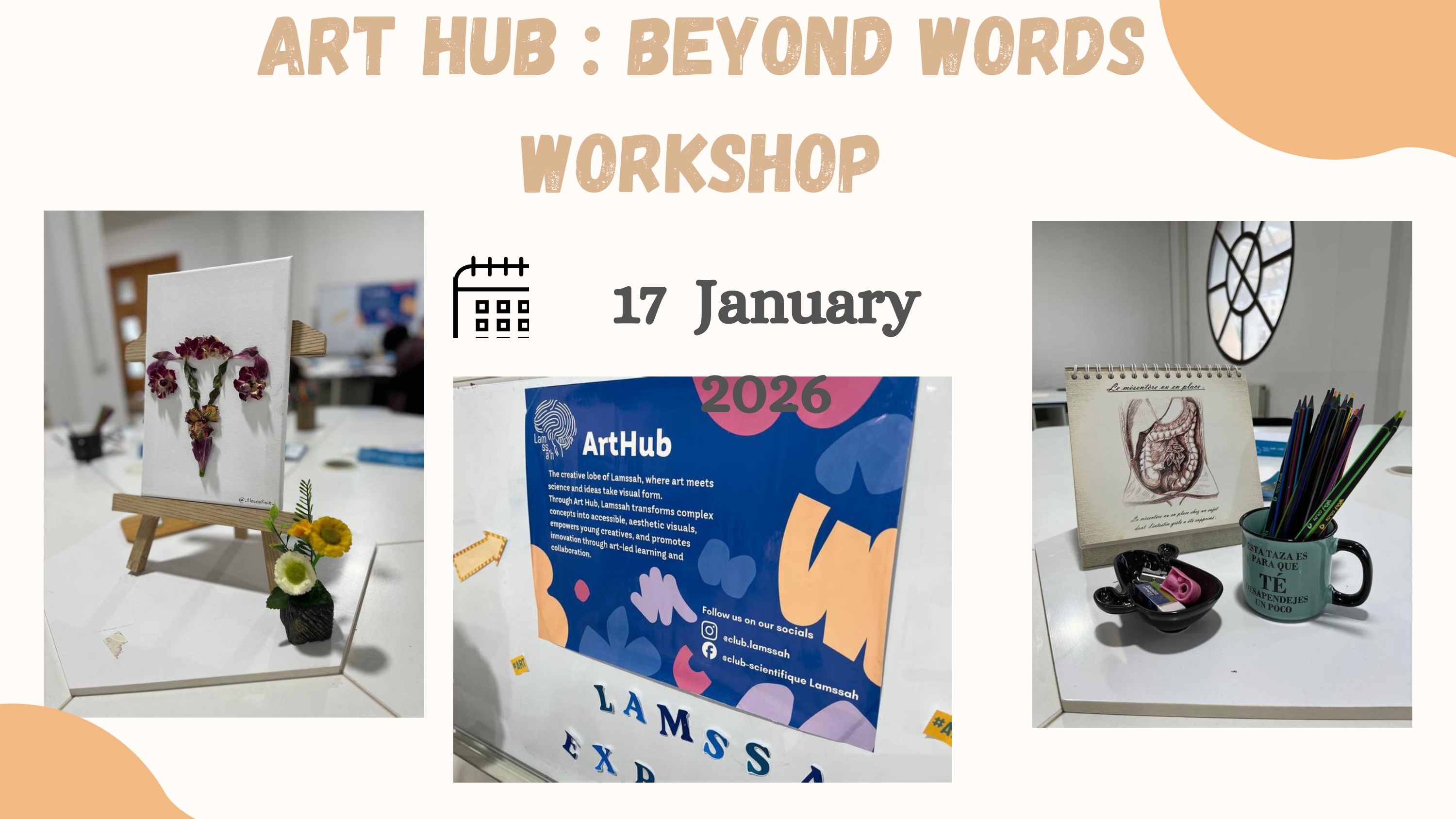 | ورشة فنية لتعلم أساسيات الرسم خاصة في المجال الطبي | ورشة خاصة بالرسم خاصة في المجال الطبي | 30 مشاركا | كلية الطب | نادي LAMSSAH | تكويني/ثقافي | 08.12.2025 |