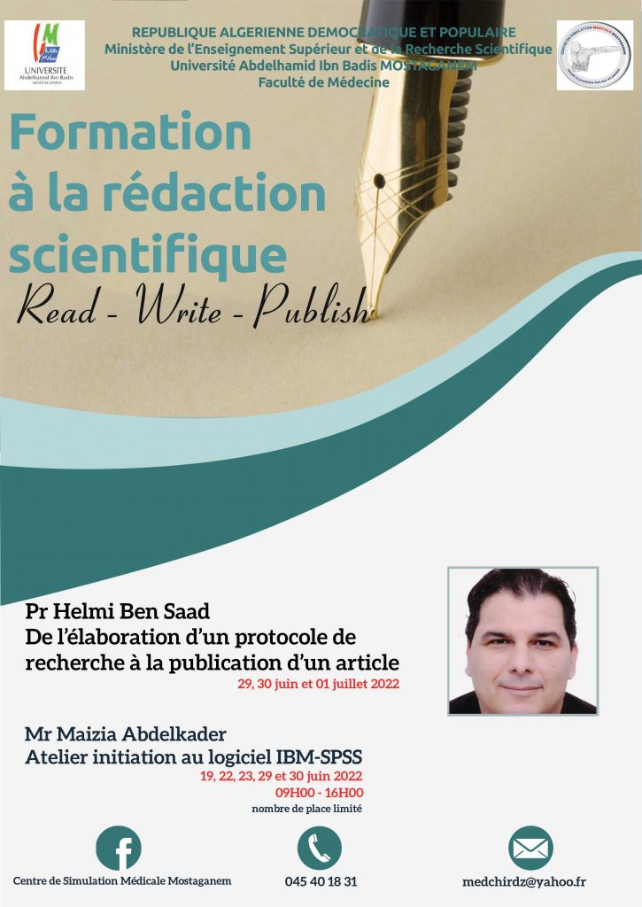 Atelier initiation au logiciel IBM-SPSS le 19, 22 et 23 juin 2022 de 09H00 à 16H00 (nombre de place limité)