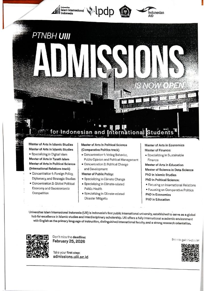 Lien d’inscription : https://admissions.uiii.ac.id/home/#Faculty